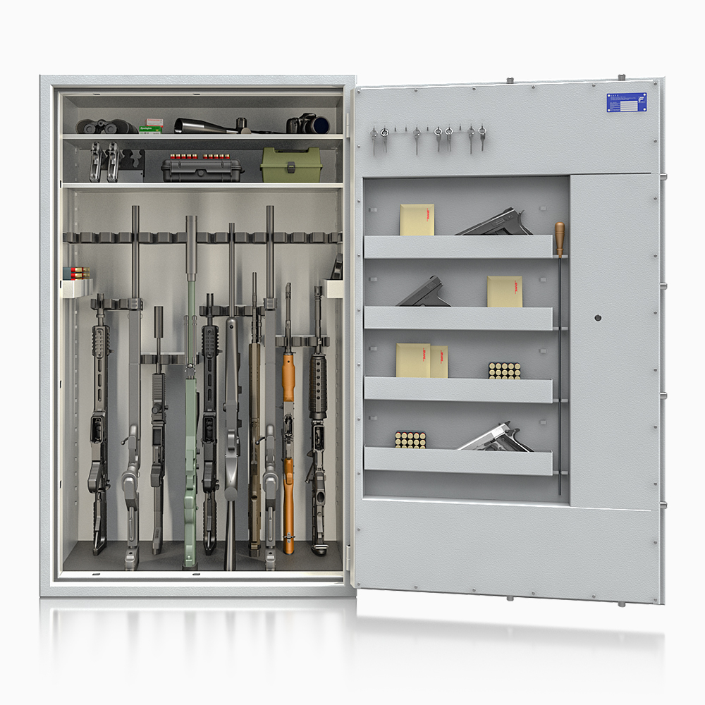 - Bezpečnost: bezpečnostní třída I (ČSN EN 1143-1), splňuje podmínky pro uložení do 20 zbraní a 20.000ks střeliva
