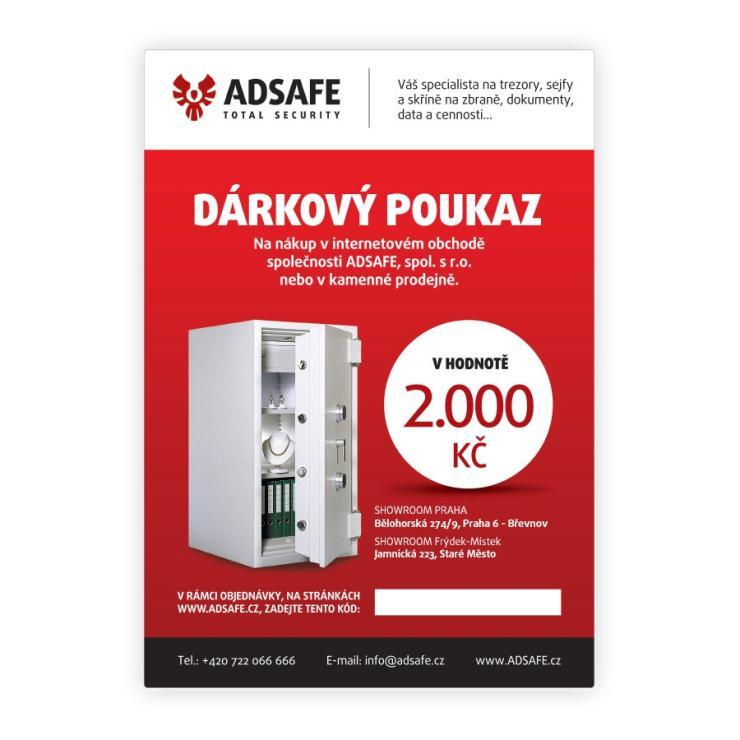 - Společně s dárkovým poukazem, obdržíte v mejlu unikátní 6-ti místný kód, který můžete vepsat do určeného místa na dárkovém poukazu. Unikátní 6-ti místný kód je tím hlavním pro uplatnění daného kupónu v rámci nákupu na www.ADSAFE.cz.
