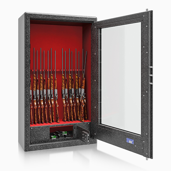 Luxusní prosklená skříň na sedmnáct zbraní Cicogna, St. Lake black