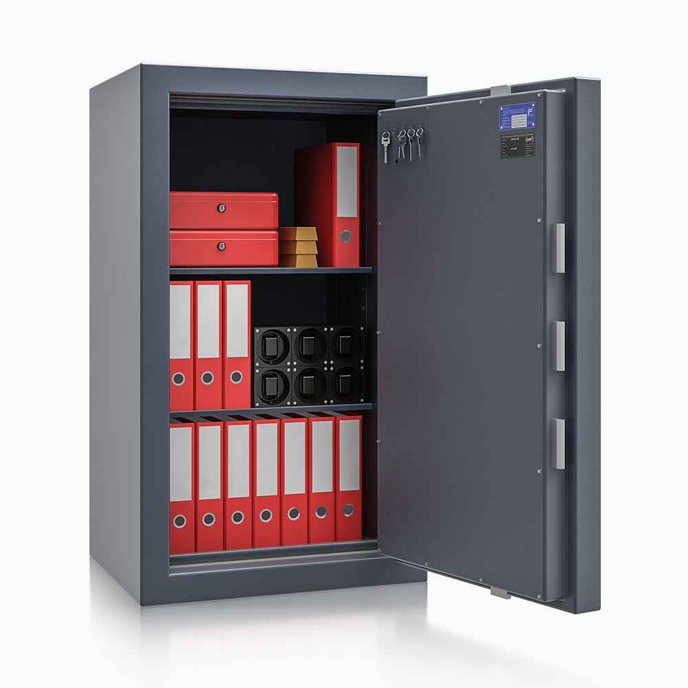 - Zámek: 2x dvojitý vysocebezpečnostní zámek třídy VdS 1 se 2 klíči (délka 95 mm), tř. B