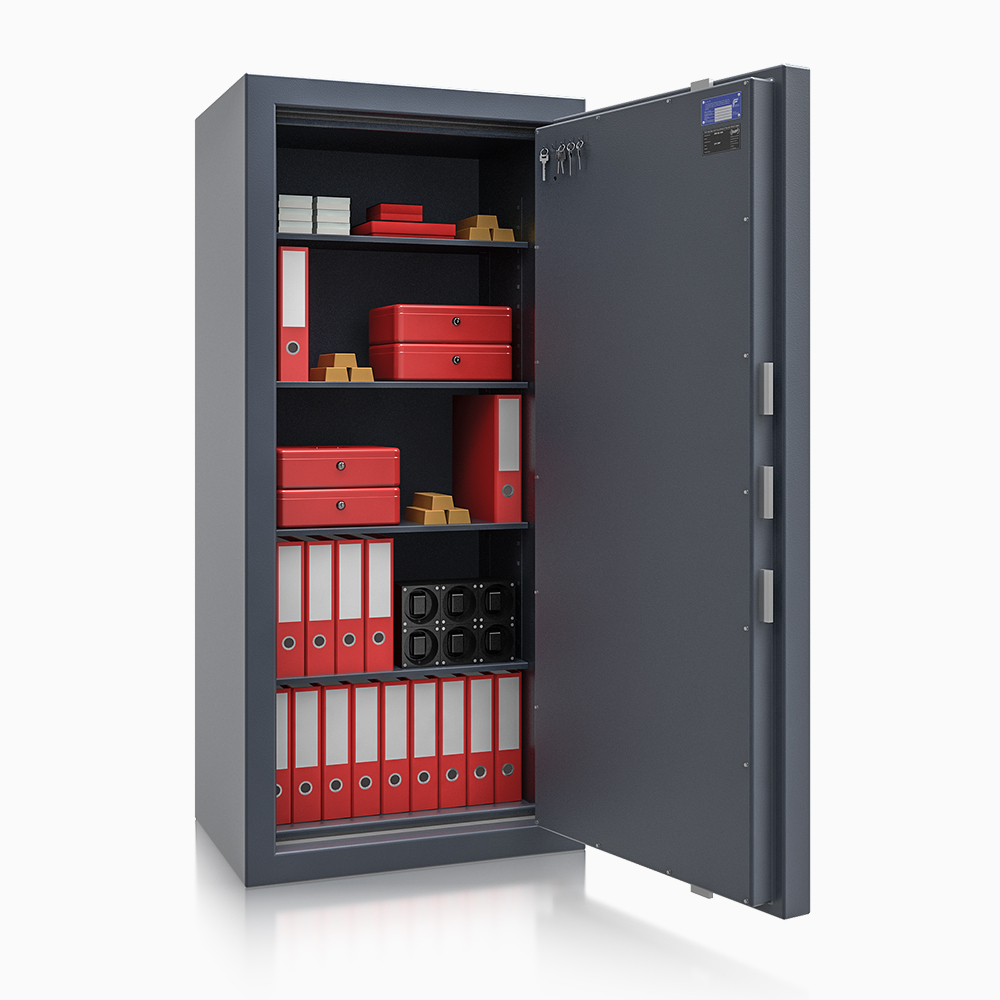 - Zámek: 2x dvojitý vysocebezpečnostní zámek třídy VdS 1 se 2 klíči (délka 95 mm), tř. B